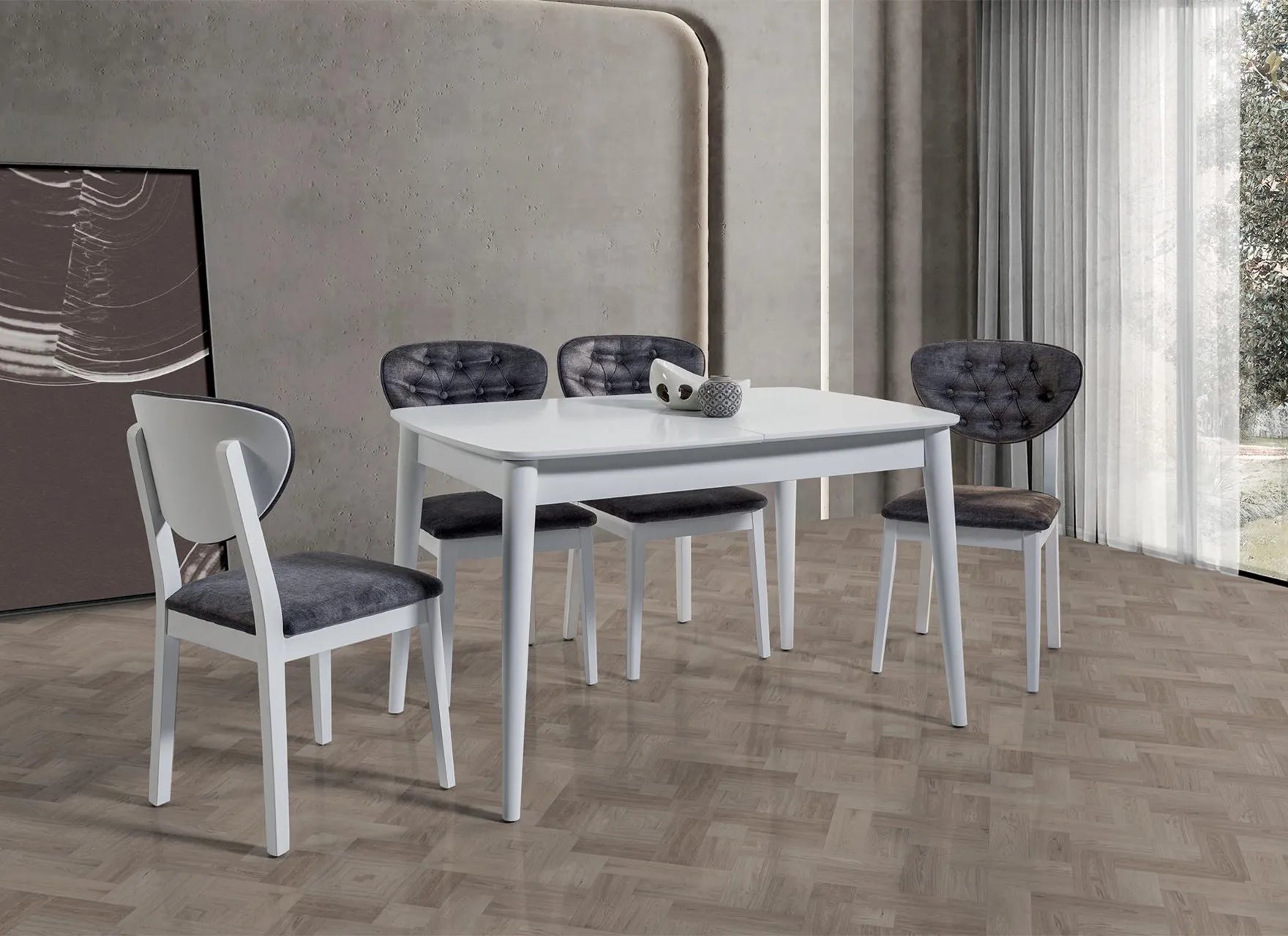 Трапезната маса LIMA съчетава модерен, високогланцов дизайн, което я прави стилен и приветлив център на трапезарията.