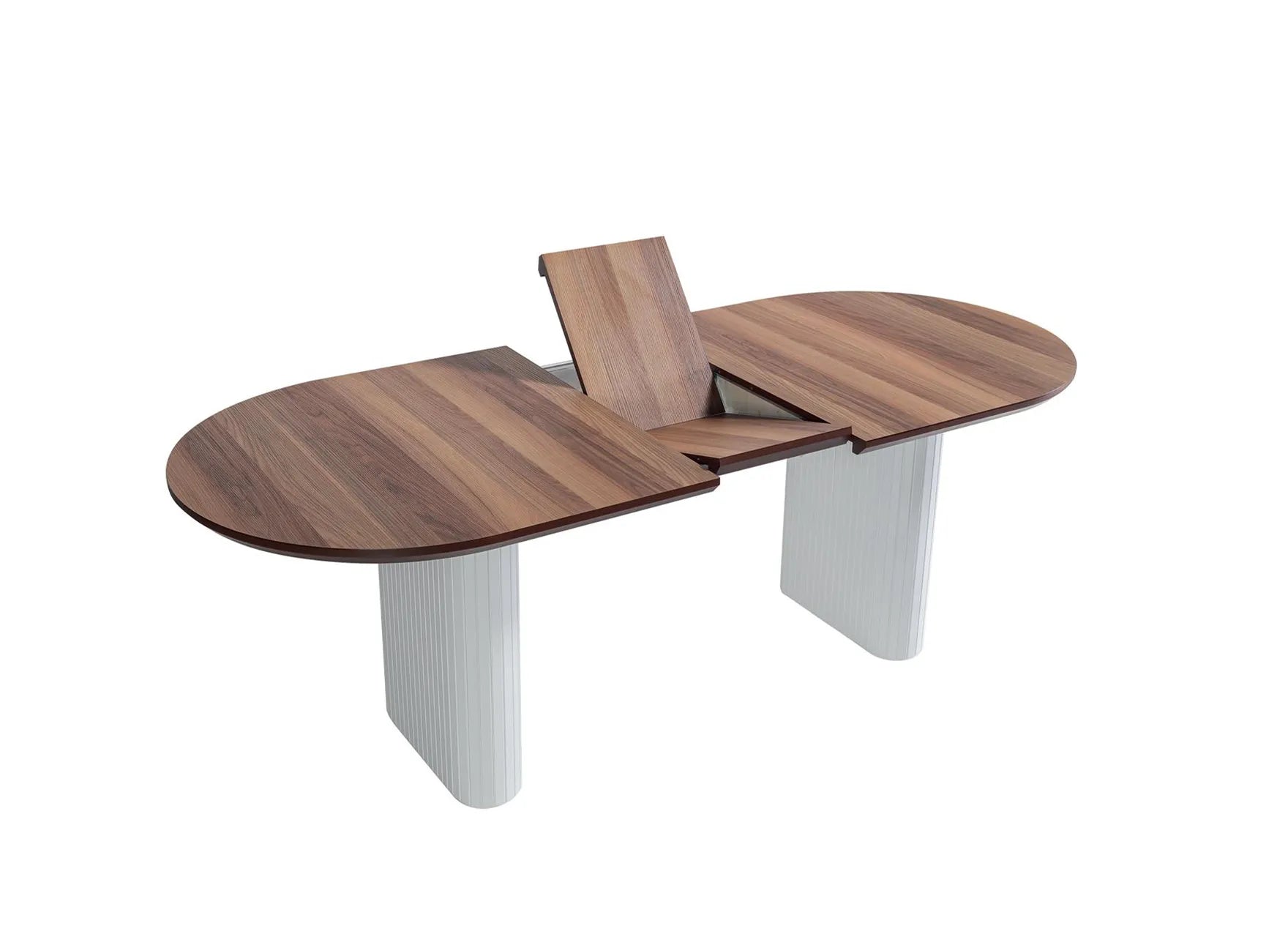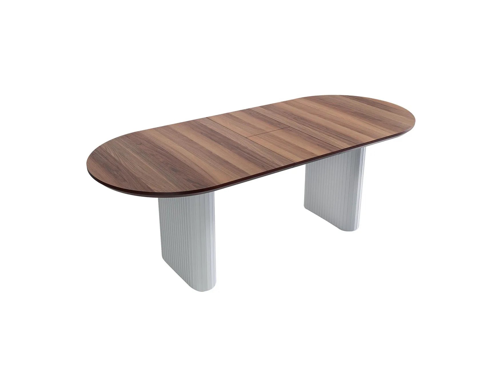 Дизайн: Отличава се с прав, плот в цвят орех, комбиниран с масивна основа в бяло.