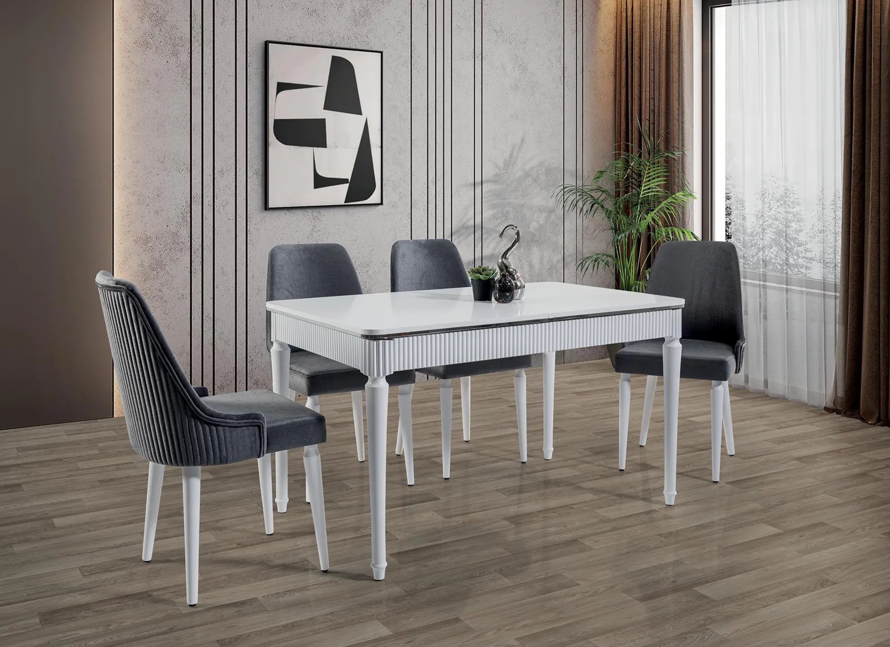 Трапезната маса PERA съчетава масивна, модерна конструкция с елегантен, светъл завършек, което я прави перфектен център на трапезарията.